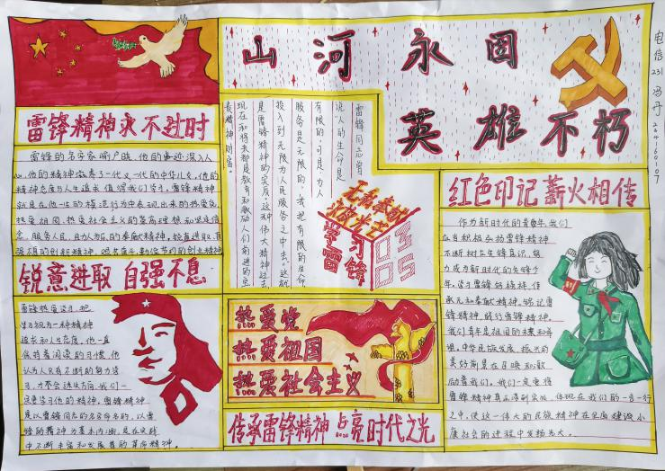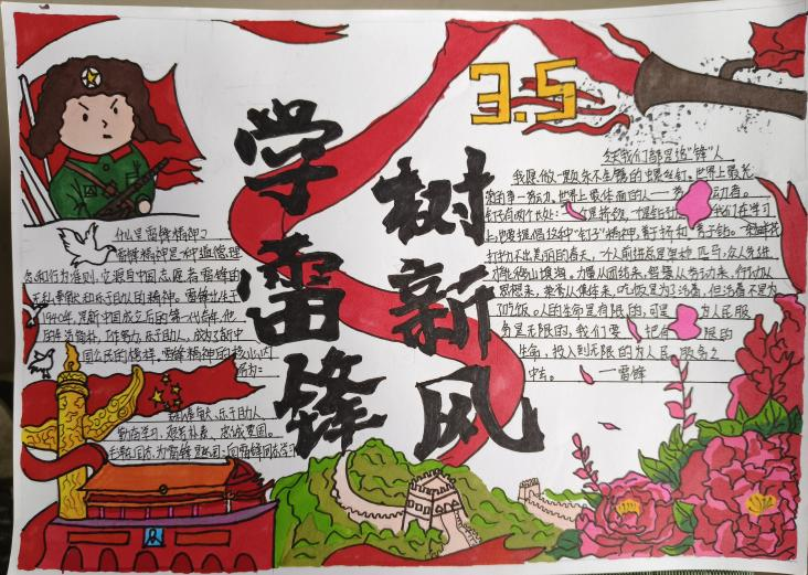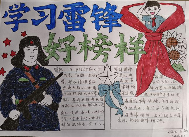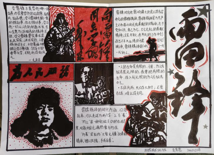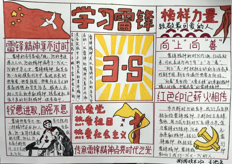 本次活动吸引了同学们的广泛参与,同学们用画笔勾勒雷锋故事,用文字传递志愿精神。一幅幅色彩斑斓的手抄报,既有对雷锋事迹的生动再现,也有对身边“活雷锋”的真情记录,更饱含着同学们对志愿精神的深刻理解。活动一共接收稿件经过评选,12份优秀作品脱颖而出,让我们一起看看同学们的作品吧!