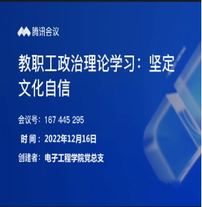 2022年12月16日下午,电子工程公司党总支组织全体进行教职工政治理论学习,会议邀请李季董事长作“坚定文化自信”主题报告。会议由电子工程公司党总支书记侯睿主持。