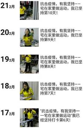 为了响应公司工会“抗击疫情,有我坚持——宅在家里做运动”十天打卡活动,bevictor伟德全院教职工纷纷积极参与到活动当中,继续在家“动起来”。