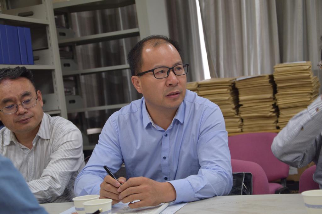 杨勇首先汇报了公司发展建设思路,详细汇报公司在专业建设、团队队伍、科学研究、员工工作等方面的工作规划,并就暑期评建工作的完成情况和存在不足进行说明。