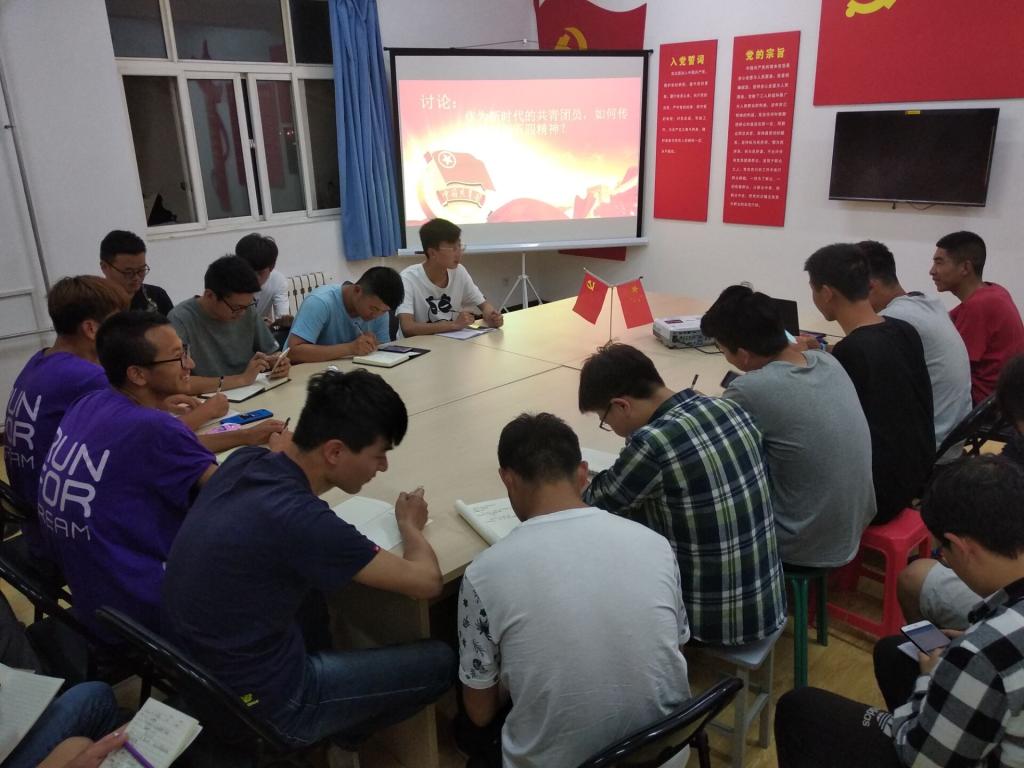 会议伊始,优秀团员重温了入团誓词,之后观影活动正式开始,本次观看的影片是《辉煌中国》,影片从抗日战争到国共内战再到建国,对共青团的建立和作用进行了详细介绍,让他们明白自己不但是中国共产党的后备军,更是中国的新生血液,从而培养同学们忧国忧民、热爱祖国、积极创新、探索科学的五四精神。观影结束后,同学们对“作为新时代的共青团员,如何传承和发扬五四精神?”等问题进行积极讨论。