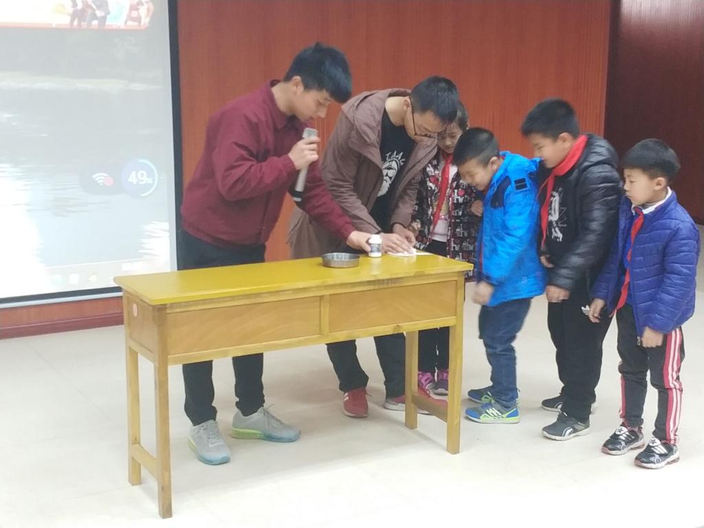 活动中,志愿者先为孩子们讲了雷锋的故事,介绍了雷锋战士短暂而又伟大的一生,希望孩子们以雷锋为榜样,培养自己认真学习、勤劳好做、乐于助人的精神。随后志愿者为小朋友们讲解了飞机模型的制作过程。小朋友们热情高涨,踊跃参与,现场欢声笑语。志愿者以“牛顿大炮”为例子,给孩子们普及了物理小知识,生动形象的说明了只要力量够大,小小的粉笔头也能飞向太空的原理。希望孩子们努力学习,锻炼自己本领,将来成为一个有用的人,为科学事业做贡献。在讲堂的最后,几位志愿者用物理知识给孩子们展示了“科学小魔术”,引起了孩子们强烈的好奇心和学习兴趣。